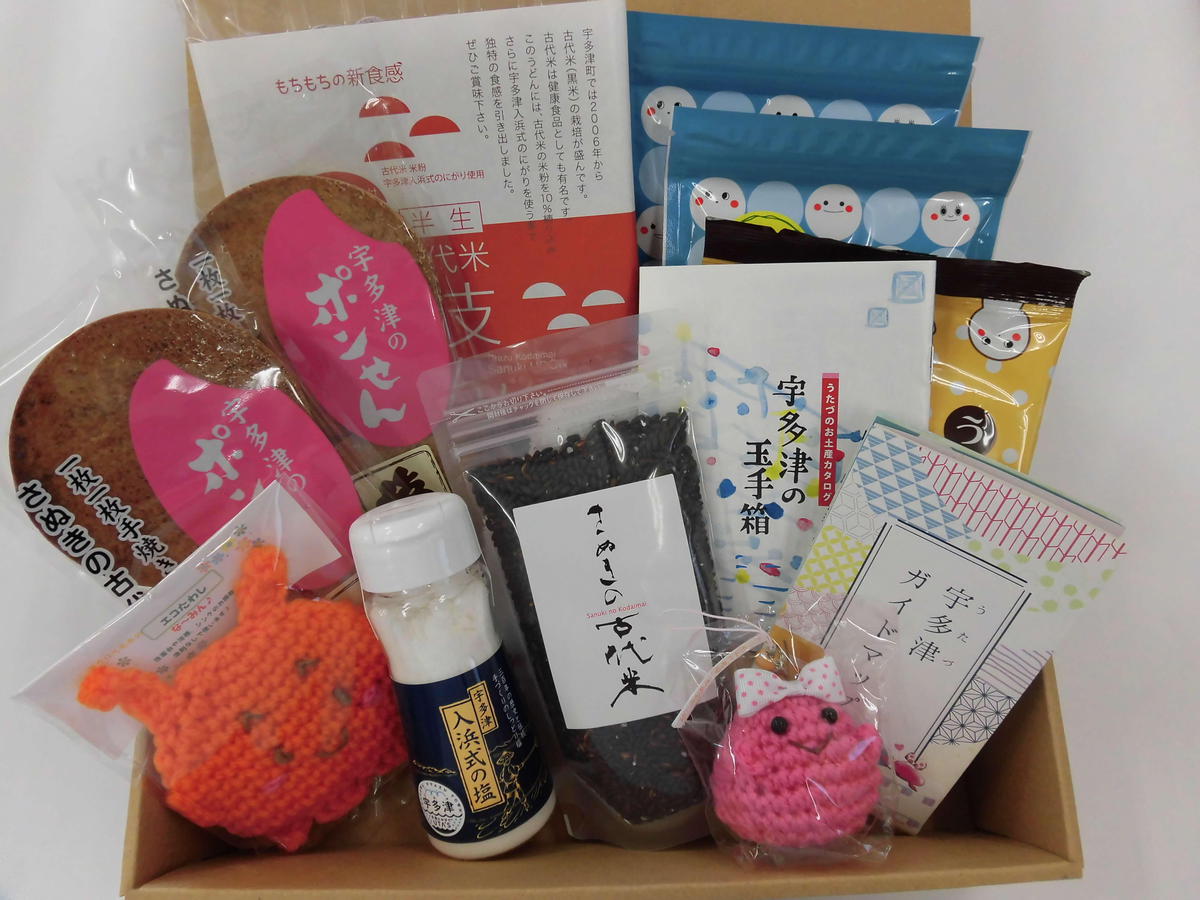 うたづ海ホタルでは、特産品をお土産として購入される方もたくさんいらっしゃいます。「塩アメ」や「塩キャラメル」が人気商品ですが、贈答用に詰め合わせを作ることも可能ですので、お好きな商品で組み合わせたい場合はうたづ海ホタルの事務所(電話0877-49-0860)までお問い合わせください。