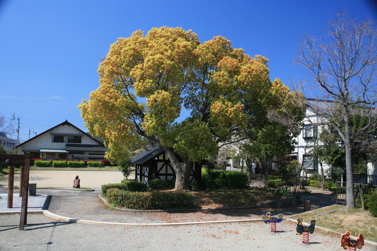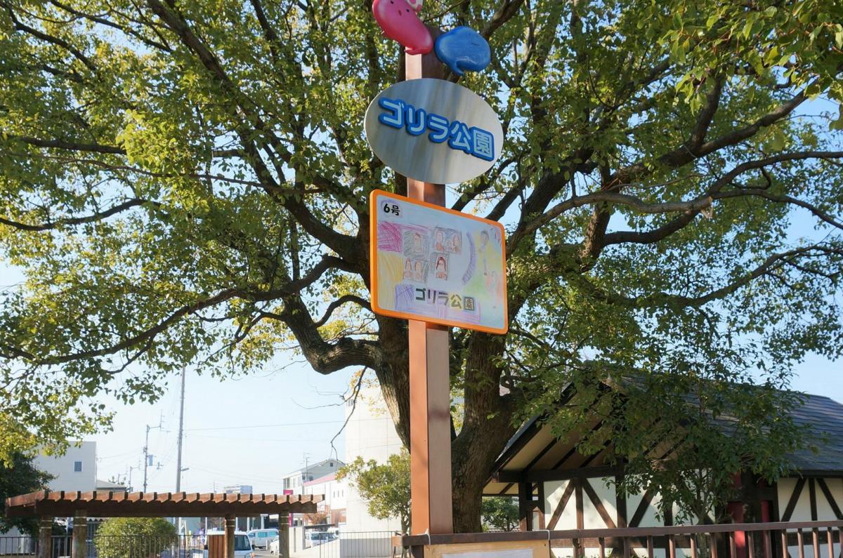 6号公園の愛称。ゴリラの像や複合遊具がある公園で、公園内にある楠の木は旧宇多津駅の駅前広場から移植されたものです。